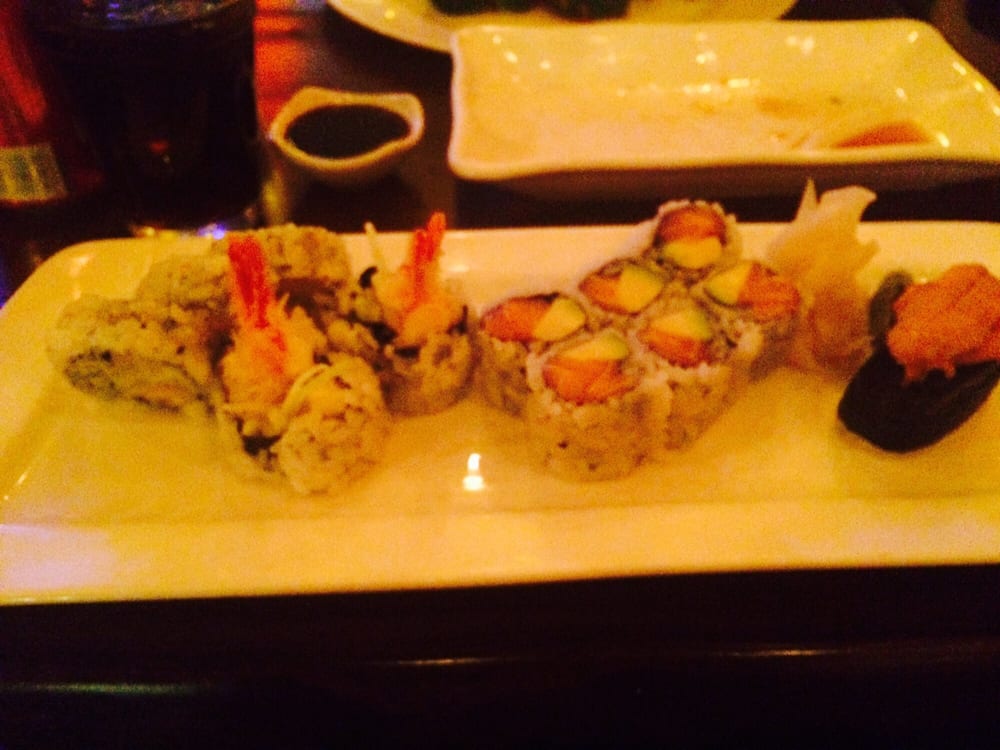 Includes 13 rolls: 3 California rolls, 2 tuna, 2 salmon, 2 spicy tuna, 2 yellowtail, 1 rocky and 1 dragon.
