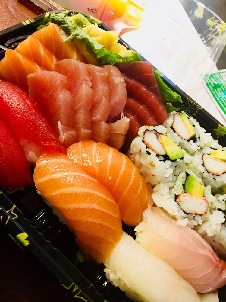 Includes 6 pieces each of tuna, salmon, yellowtail, white fish, shrimp and eel with 1 spicy girl roll.